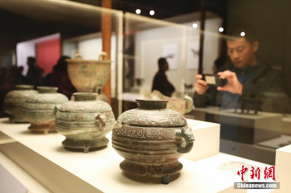 12月13日,观众在中国国家博物馆参观展出的青铜器。当日,“周风遗韵——陕西刘家洼考古成果展”在北京中国国家博物馆开幕。本次展览分为列土分邦、小国之光和万流归宗三个单元,共展出青铜重器、礼乐用具、金玉饰品等300余件文物展品,呈现了陕西澄城刘家洼芮国遗址、陕西韩城梁带村芮国遗址的考古发现成果。中新社记者 蒋启明 摄