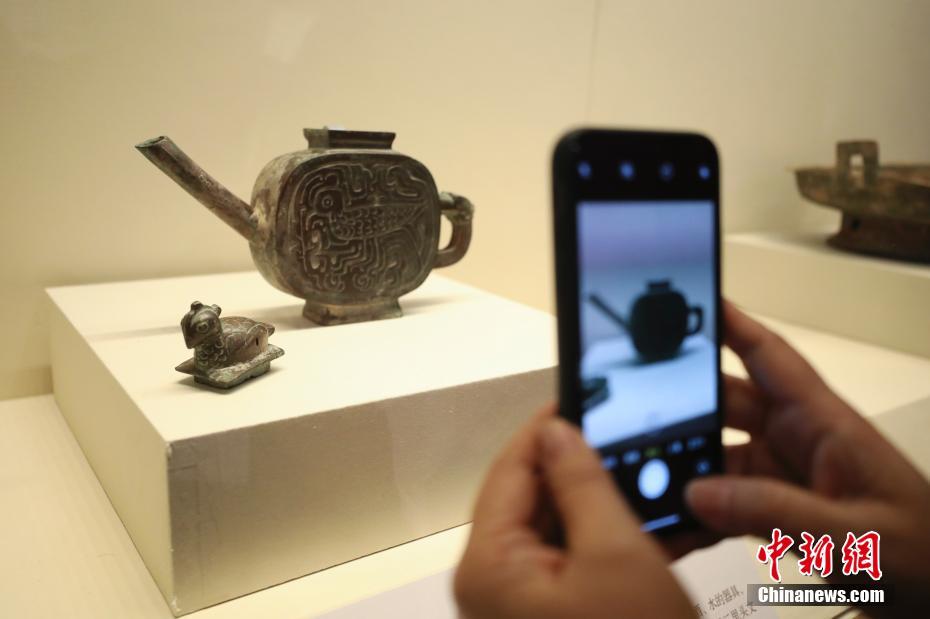 12月13日,中国国家博物馆展出的青铜器“凤鸟纹盉”。当日,“周风遗韵——陕西刘家洼考古成果展”在北京中国国家博物馆开幕。本次展览分为列土分邦、小国之光和万流归宗三个单元,共展出青铜重器、礼乐用具、金玉饰品等300余件文物展品,呈现了陕西澄城刘家洼芮国遗址、陕西韩城梁带村芮国遗址的考古发现成果。中新社记者 蒋启明 摄