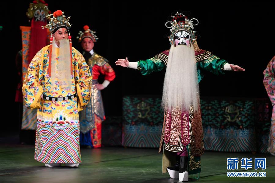 12月14日,在格鲁吉亚首都第比利斯,演员演出徽剧《惊魂记》。 中国徽剧《惊魂记》14日晚在格鲁吉亚首都第比利斯精彩亮相,为当地观众献上一台跨文化的戏曲盛宴。 新华社发(塔姆娜 摄)