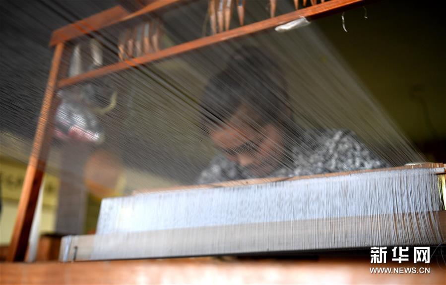 12月14日,在河北定州缂丝传习基地,工作人员在制作缂丝。新华社记者 王晓 摄