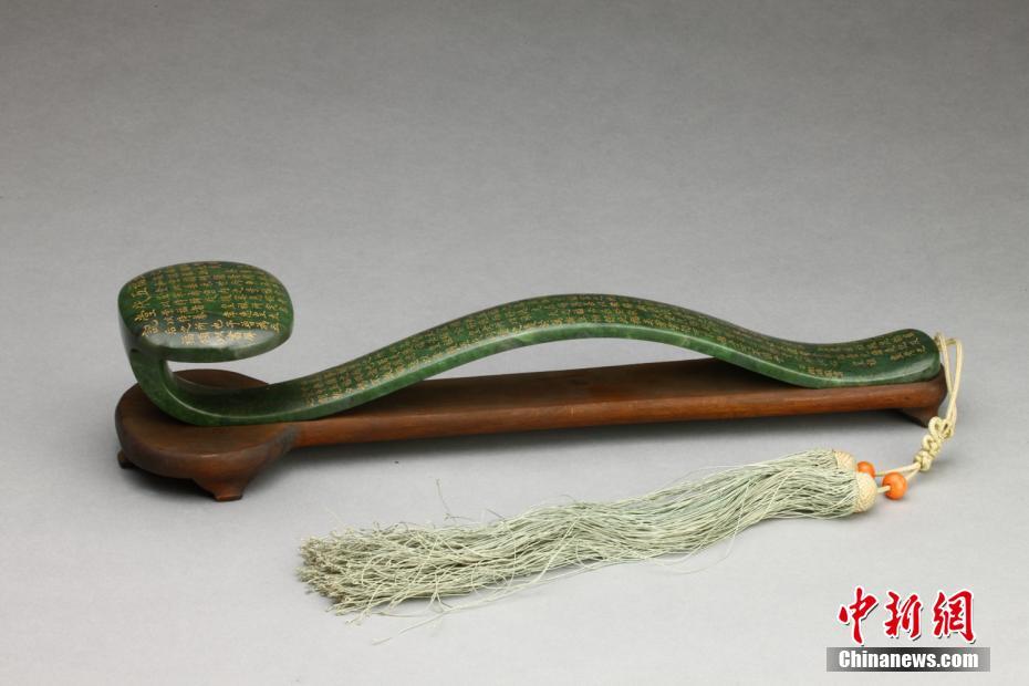 乾隆御题“五福五代堂记”碧玉如意。 金沙遗址博物馆 供图
