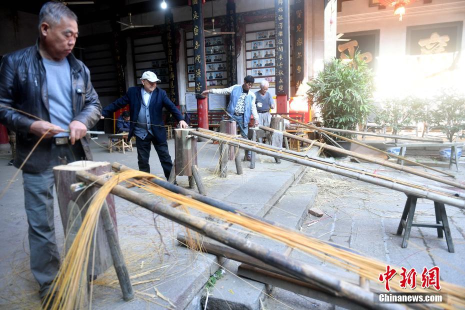 12月17日,竹编艺人正在制作竹编工艺品。福州市仓山区盖山镇郭宅村竹编历史最早可追溯到唐末宋初,所产竹编制品既有实用的农具、日用品,也有装饰用的工艺品,而被誉为“八闽竹器第一乡”。 中新社记者 吕明 摄