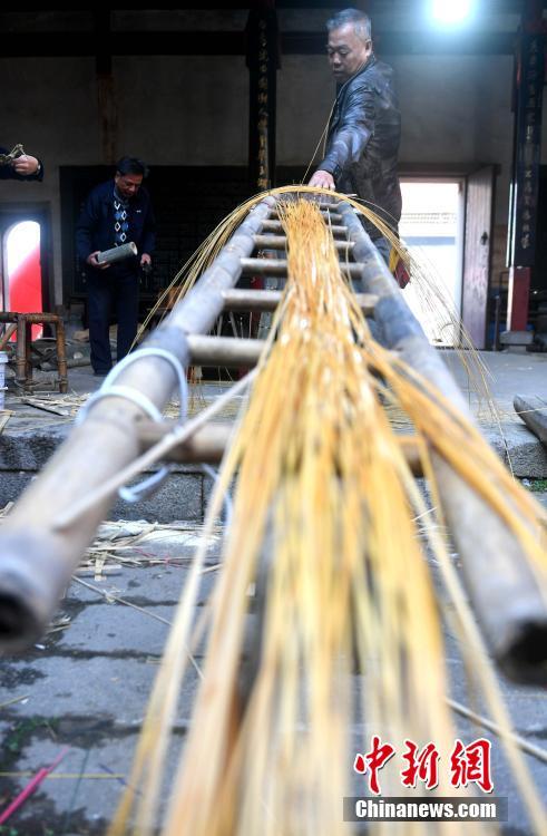 12月17日,福州郭宅竹编艺人正在制作竹编制品。福州市仓山区盖山镇郭宅村竹编历史最早可追溯到唐末宋初,所产竹编制品既有实用的农具、日用品,也有装饰用的工艺品,而被誉为“八闽竹器第一乡”。 中新社记者 吕明 摄
