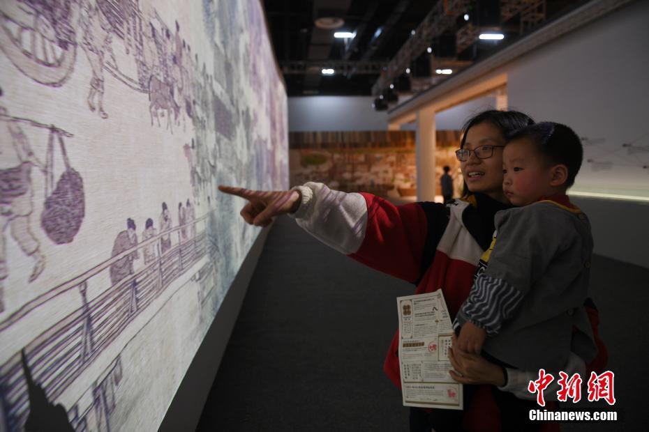 观众带孩子参观《清明上河图3.0》。中新社记者 王刚 摄