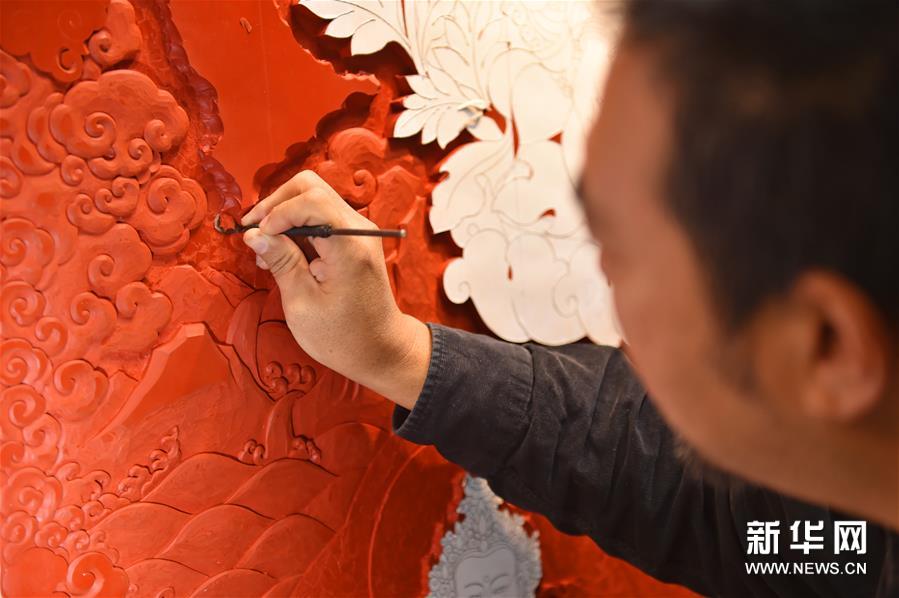 12月16日,马宁在工作室雕刻作品。新华社发(陈钟昊 摄)
