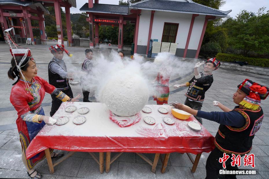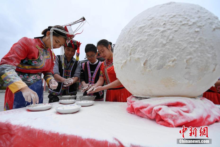 迎冬至 湖南畲族民众制巨型“冬节丸”