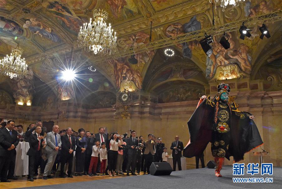 10月9日,在奥地利首都维也纳“文化中国、锦绣四川”四川文化旅游展示会上,人们观看“变脸”表演。本次活动通过图片展、传统文艺表演以及川菜美食推介等形式,向当地居民和海外华人展示川蜀文化,展现中国魅力。新华社记者 郭晨 摄