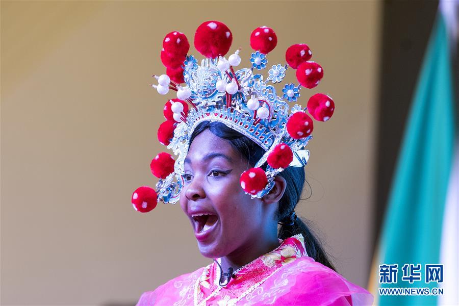 8月5日,在南非比勒陀利亚,来自开普敦大学孔子学院的学生表演京剧《梨花颂》。新华社记者 陈诚 摄
