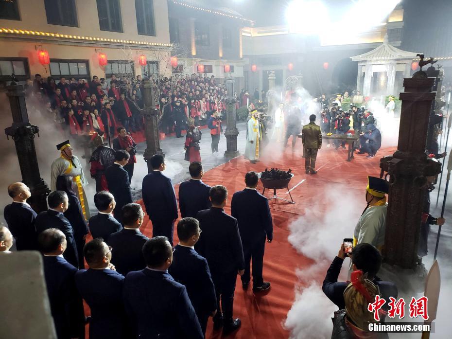 12月22日晚,东阿阿胶冬至取水炼胶仪式在千年古城山东东阿县举行。中新社记者 赵晓 摄