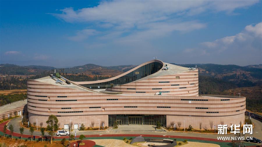 这是12月26日无人机拍摄的澄江化石地自然博物馆。云南澄江化石地自然博物馆是集收藏、研究、展示、教育为一体的大型自然博物馆,以化石为主题,阐释了生命起源、生命演化和生物多样性等内容。据了解,澄江化石地自然博物馆展示了来自世界各地、各个地质时期的珍贵生物化石及标本3000余件。目前,博物馆已基本建成,预计将在2020年上半年对游客开放。新华社记者 胡超 摄