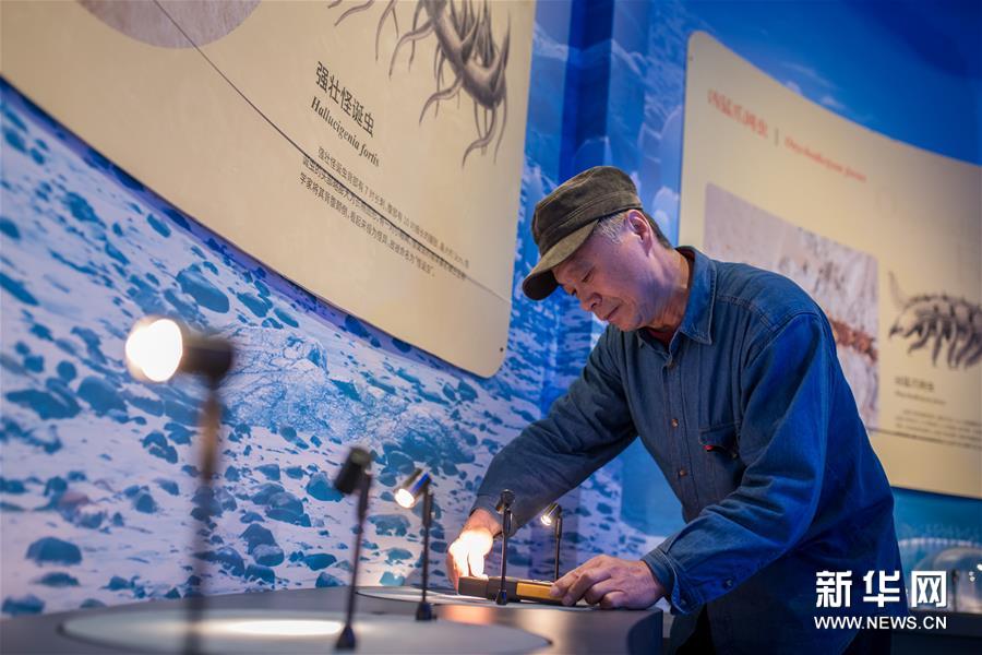 12月26日,在澄江化石地自然博物馆,一名工作人员在调试灯光。新华社记者 胡超 摄