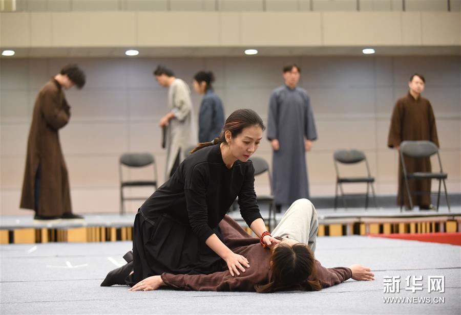 12月26日,在话剧《二月》中饰演陶岚的演员卢芳(前左)在排练。新华社记者 罗晓光 摄
