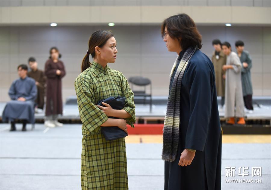 12月26日,在话剧《二月》中饰演文嫂的演员黄薇(左)和饰演萧涧秋的演员王玮在排练。新华社记者 罗晓光 摄