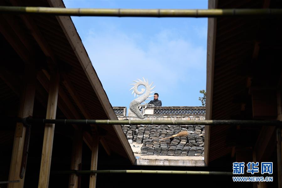 12月27日,在宁海县岔路镇下畈村,工匠葛仁长在一座古戏台的屋顶制作灰雕。 号称“中国古戏台文化之乡”的浙江省宁海县现存125座古戏台,有10座被列为全国重点文物保护单位,在修缮中的古戏台有10余个。近年来,宁海县加强公共财政对古戏台保护工作的支持力度,安排专项经费,及时根据古戏台的具体残损情况进行修缮,让古戏台重焕新生。 新华社记者 黄宗治 摄