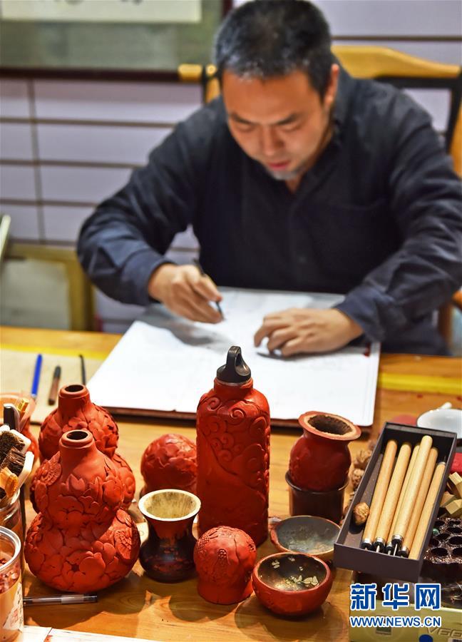北京雕漆技艺代表性传承人马宁在设计雕漆艺术(12月18日摄)。新华社发(陈钟昊 摄)
