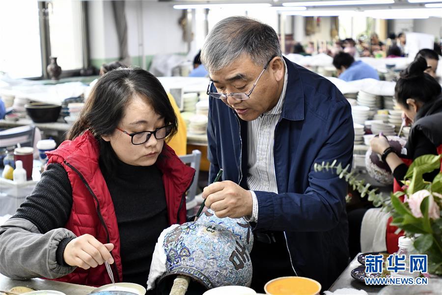 景泰蓝工艺美术大师钟连盛在指导年轻技师(12月26日摄)。新华社记者 李欣 摄