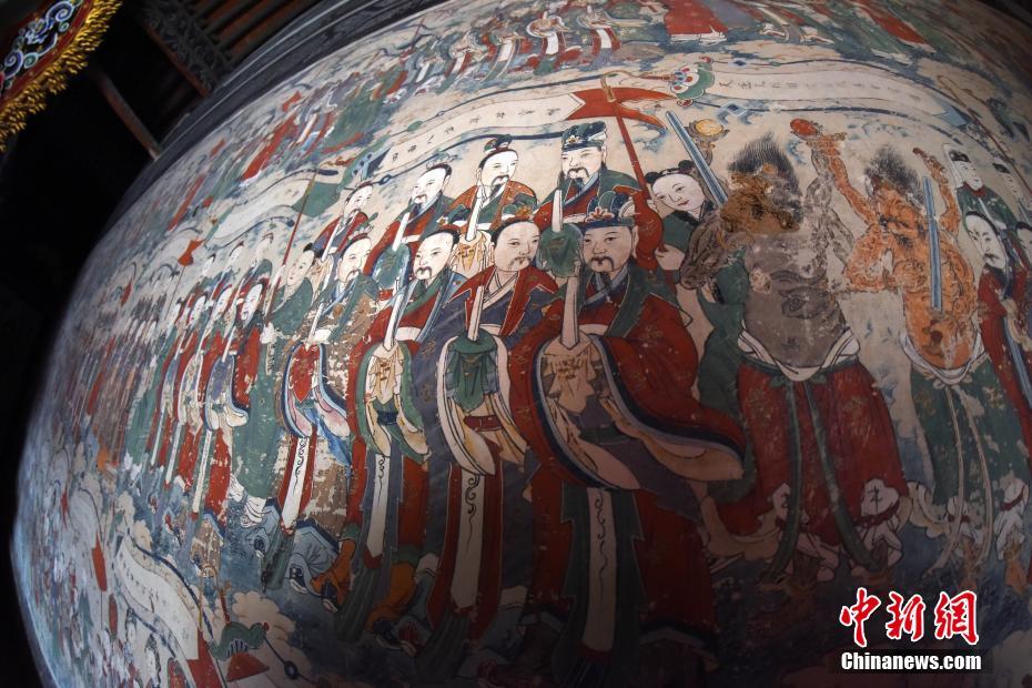 1月2日,重泰寺内保存的精美壁画。重泰寺位于河北蔚县城西北部涌泉庄乡,是蔚县规模最大、主体建筑保存最为完整的一处千年古刹,是全国重点文物保护单位。中新社记者 孙自法 摄