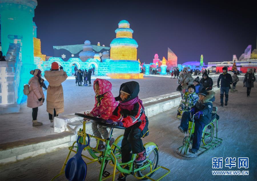 1月5日,游客在冰雪大世界园区游览。新华社记者 王松 摄