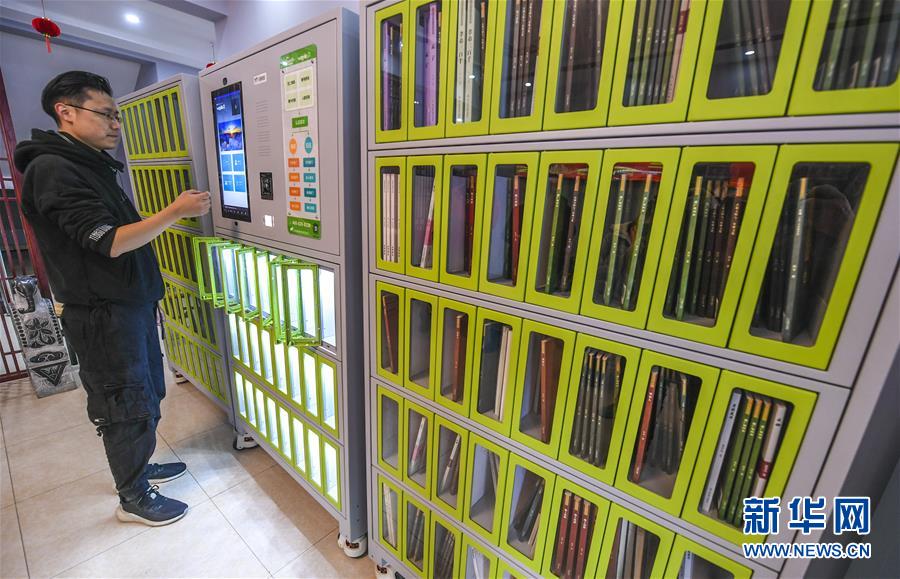 1月7日,工作人员在河北永清经济技术开发区的全国工商联书业商会馆配图书联合现采基地调试智能售书柜。新华社记者 李晓果 摄