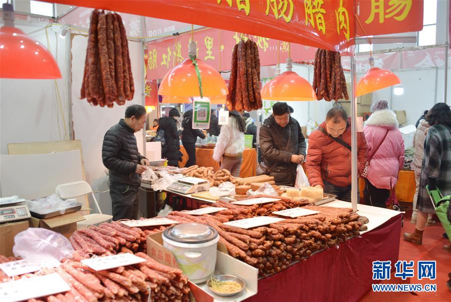1月8日,消费者在内蒙古国际会展中心挑选香肠等年货。 当日,第六届呼和浩特年货博览会在内蒙古国际会展中心开幕。此次年货博览会为期13天,共有800余家国内外企业参展。 新华社记者 王靖 摄