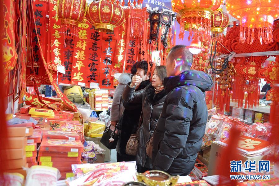 1月8日,消费者在内蒙古国际会展中心选购春联。 当日,第六届呼和浩特年货博览会在内蒙古国际会展中心开幕。此次年货博览会为期13天,共有800余家国内外企业参展。 新华社记者 安路蒙 摄