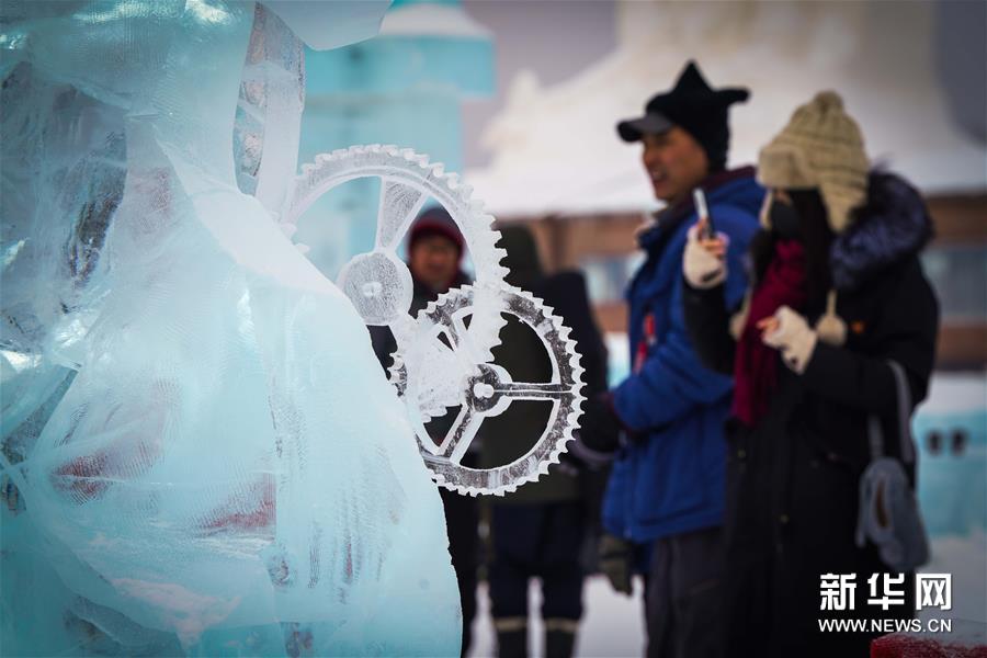 这是获得一等奖的俄罗斯雅库茨克队冰雕作品《时间的主人》(局部)(1月8日摄)。1月8日,在哈尔滨冰雪大世界园区进行的第三十四届中国哈尔滨国际冰雕比赛落下帷幕。俄罗斯雅库茨克队冰雕作品《时间的主人》获得一等奖。新华社记者 王松 摄
