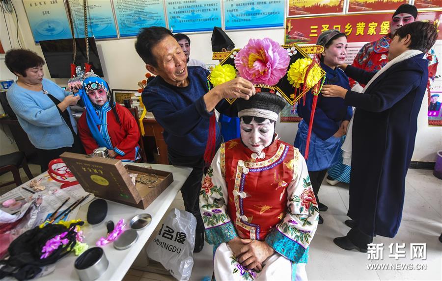 1月7日,河北省永清县三圣口乡黄家堡村村民在进行演出前的准备。河北省永清县三圣口乡黄家堡村是当地知名的京剧传承村。新春将至,黄家堡村组织村民进行戏曲大排演,弘扬传统戏曲文化,营造浓厚节日氛围,喜迎新春佳节。新华社记者 李晓果 摄