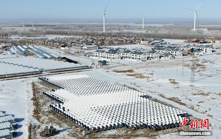 1月8日,航拍张北县德胜村。河北省张家口市张北县德胜村大部分新房已建成入住,村民们张灯结彩贴春联准备迎接春节的到来。据了解,该村通过新建民宿,打造集休闲度假、生态观光为一体的民俗旅游示范村,进一步为村民增收。 中新社记者 韩冰 摄