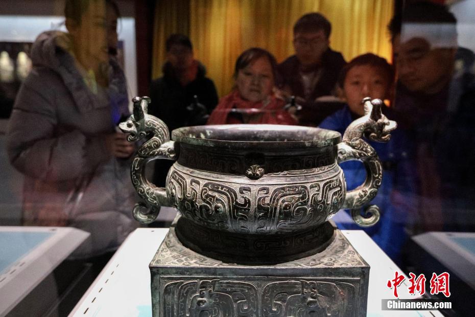 1月9日,《清高宗乾隆皇帝展》在郑州博物馆新馆持续展出。该展览设置两个展厅,分为“密诏即位,君临天下”“稽古崇文,靖边宣武”“怡情乐志,物阜工巧”“龙袍袈裟,兴黄安蒙”“观风问俗,出巡中州”五大单元,详实地回顾了乾隆皇帝登基以后的政治生涯和私人生活。本次“清高宗乾隆皇帝展”是郑州博物馆新馆试开放的第一展。图为乾隆收藏的西周时期追簋。 中新社记者 王中举 摄