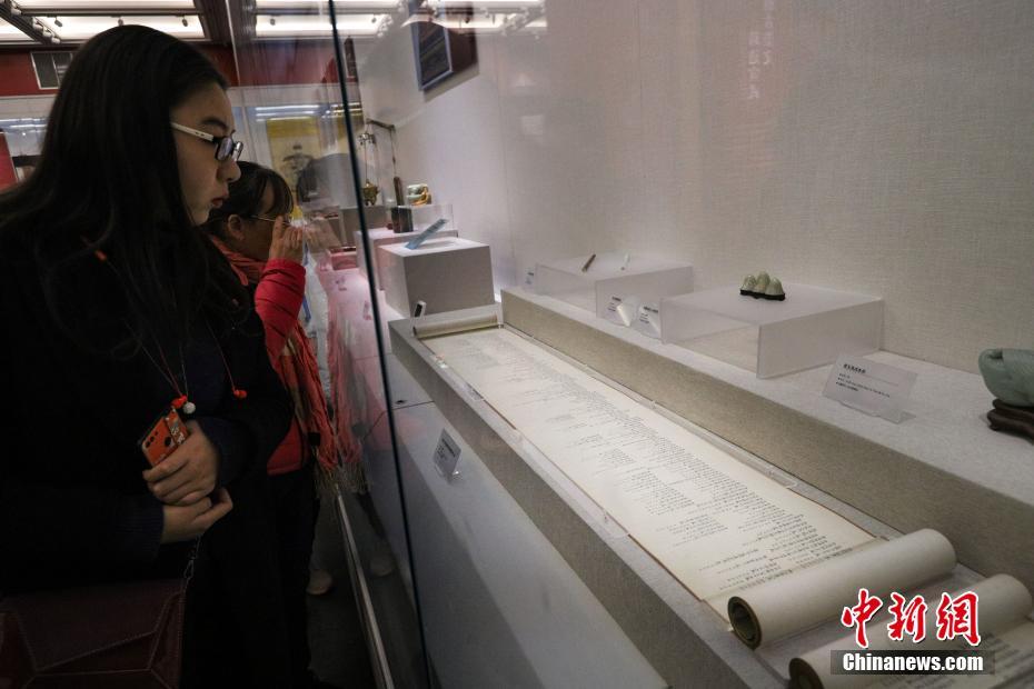 1月9日,《清高宗乾隆皇帝展》在郑州博物馆新馆持续展出。该展览设置两个展厅,分为“密诏即位,君临天下”“稽古崇文,靖边宣武”“怡情乐志,物阜工巧”“龙袍袈裟,兴黄安蒙”“观风问俗,出巡中州”五大单元,详实地回顾了乾隆皇帝登基以后的政治生涯和私人生活。本次“清高宗乾隆皇帝展”是郑州博物馆新馆试开放的第一展。图为纪昀手书的《钦定四库全书简明目录》。 中新社记者 王中举 摄