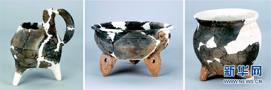 这张拼版照片显示的是山东滕州市西孟庄遗址出土的陶器(资料照片)。新华社发