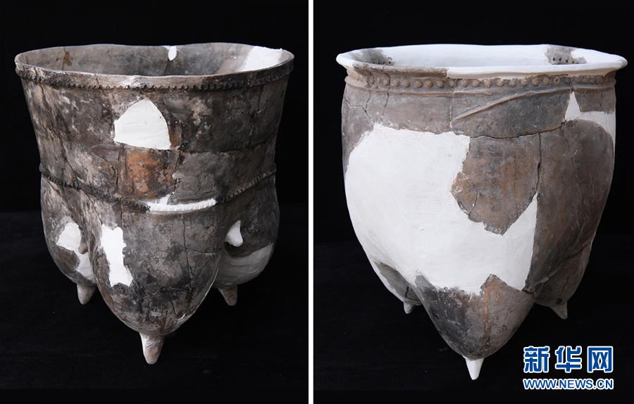 这张拼版照片显示的是黑龙江齐齐哈尔市洪河遗址出土的陶鬲(资料照片)。新华社发