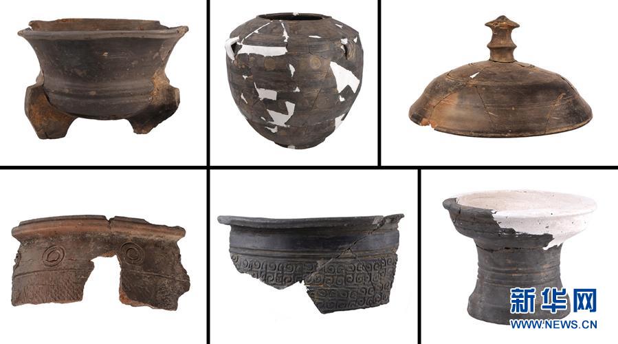 这张拼版照片显示的是山西绛县西吴壁遗址出土的陶器(资料照片)。新华社发