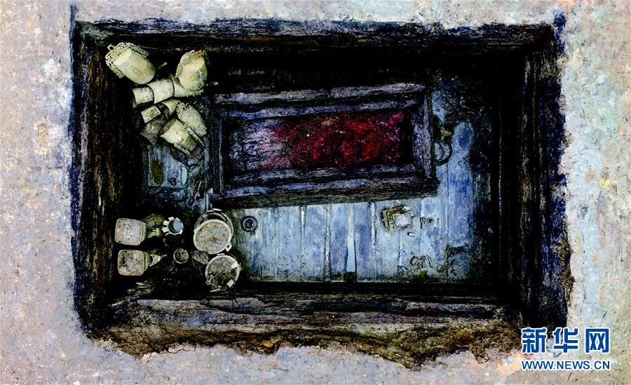 这是湖北随州市枣树林春秋曾国贵族墓地曾公求墓椁室(资料照片)。新华社发