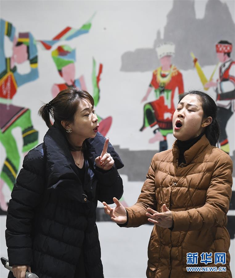 1月12日,中央歌剧院女高音歌唱家夏羽(左)在对学员进行指导。