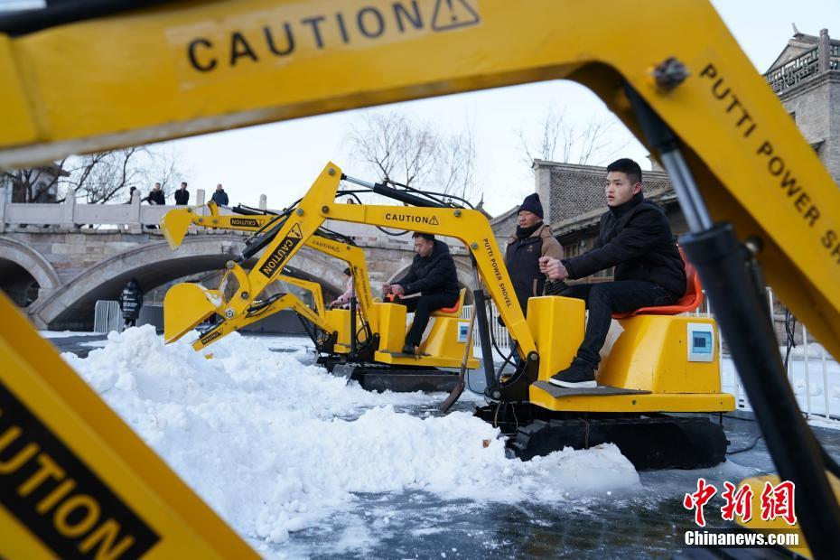 1月12日,游客体验“冰雪挖掘机”。北京司马台长城脚下的古北水镇景区在1月2日至2月8日期间举行“长城庙会过大年”活动。游客可体验庙会市集、民间花会、庙会小吃、街头民艺、冰上运动、露天温泉、夜赏花灯等活动。中新社记者 苏丹 摄