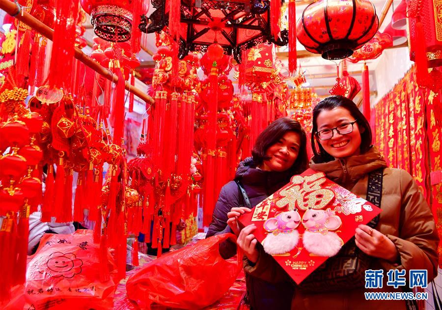 1月13日,福州市民展示刚选购的“福”字挂件。春节临近,不少市民来到福州市鼓西路“春联一条街”选购春联、“福”字等节日饰品。 新华社记者 魏培全 摄