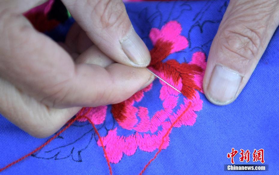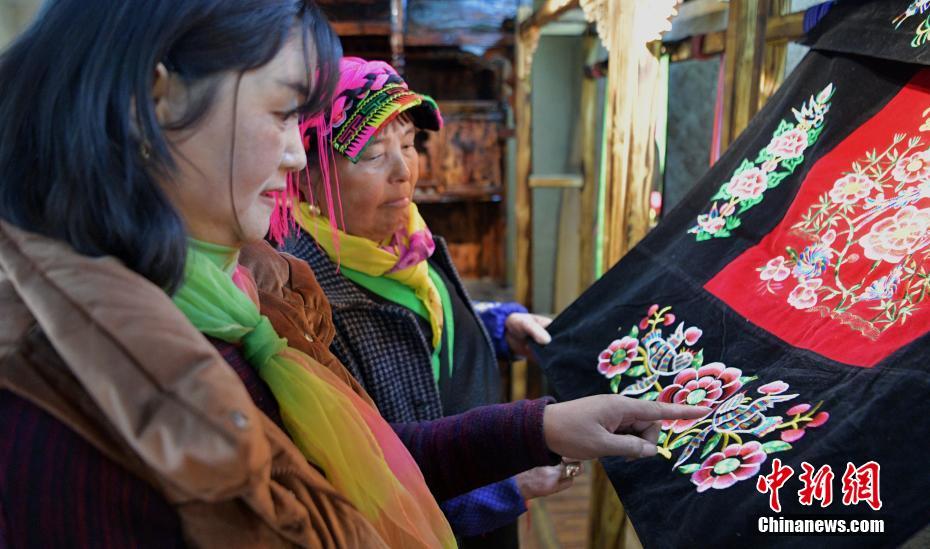 图为1月13日,四川泸定县烹坝镇绣娘巧手绣花。中新社记者 刘忠俊 摄