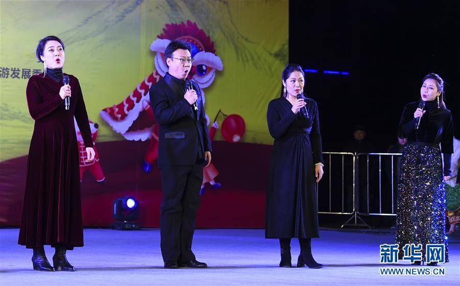 1月14日,中央歌剧院的歌唱家们在慰问演出上演唱。 当日,“我们的中国梦”——文化进万家中央歌剧院文艺小分队来到重庆市石柱土家族自治县进行慰问演出,歌唱家们为现场观众演唱了《我爱你中国》《红旗飘飘》《我和我的祖国》《共筑中国梦》《达坂城的姑娘》等众多经典歌曲。 新华社记者 王全超 摄