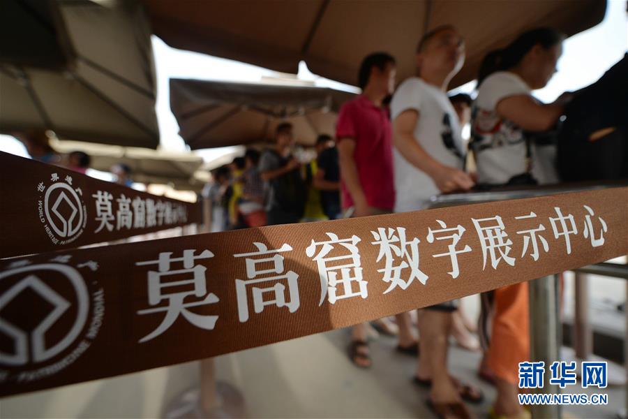 游客在莫高窟数字展示中心排队等待参观(2016年8月4日摄)。新华社记者 陈斌 摄