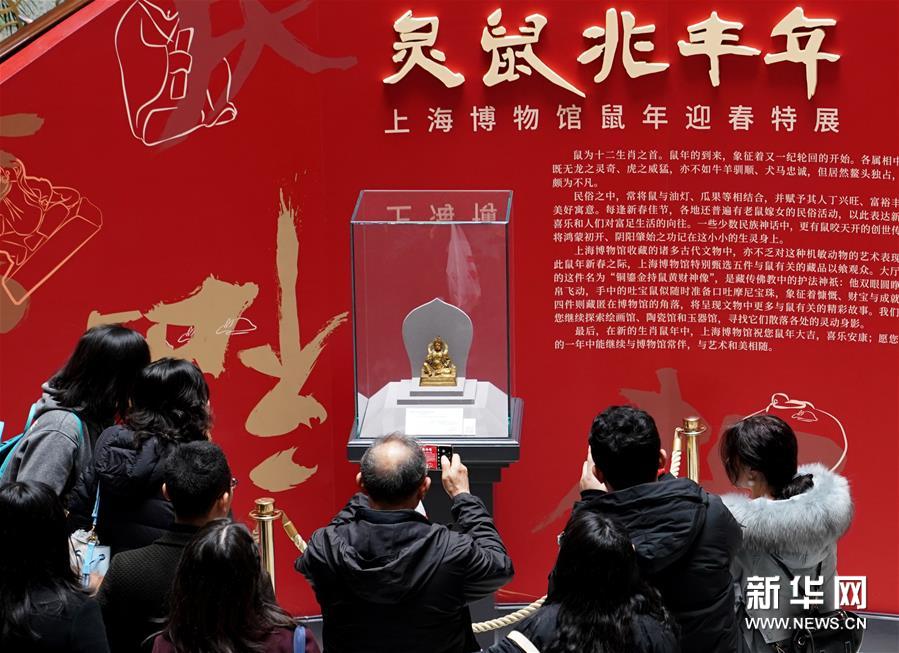 1月15日,观众参观上海博物馆鼠年迎春特展。1月14日,展现古今鼠生肖形象的“灵鼠兆丰年——上海博物馆鼠年迎春特展”揭幕。上海博物馆以五件文物布置了颇具趣味的特展,为即将到来的农历庚子鼠年纳福迎祥。新华社记者 刘颖 摄