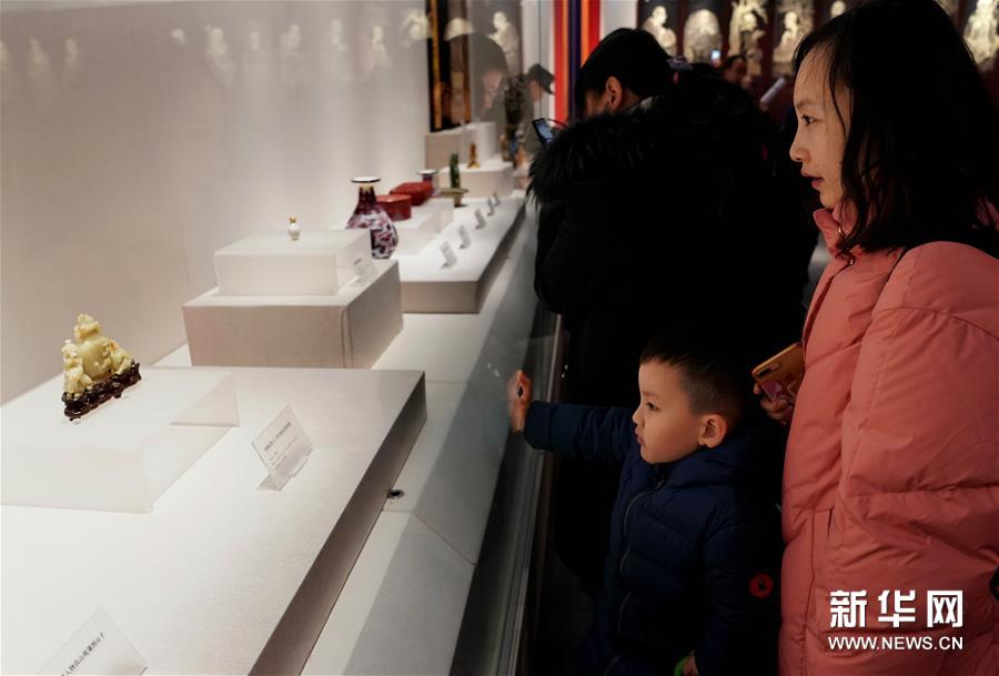 1月16日,参观者在“清高宗乾隆皇帝展”上观看展品。新华社记者 李安 摄