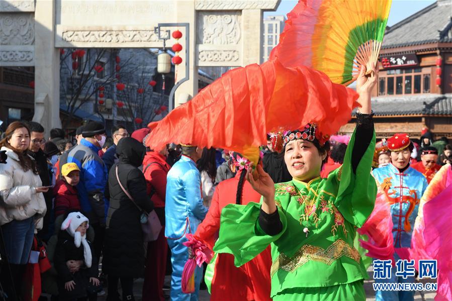 1月17日,古城秧歌队在启动仪式上表演。 当日,山东省青岛市“2020来即墨古城过大年”活动启动,古城年货大集、各地特色小吃、非遗工艺品展示、民俗文化展演等持续上演,拉开迎春庆祝活动的序幕。 新华社记者 李紫恒 摄
