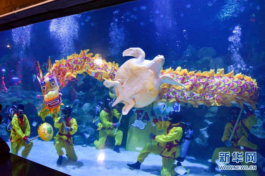 1月17日,在马来西亚吉隆坡,潜水员表演水中舞龙,迎接农历新年到来。 新华社发(张纹综摄)