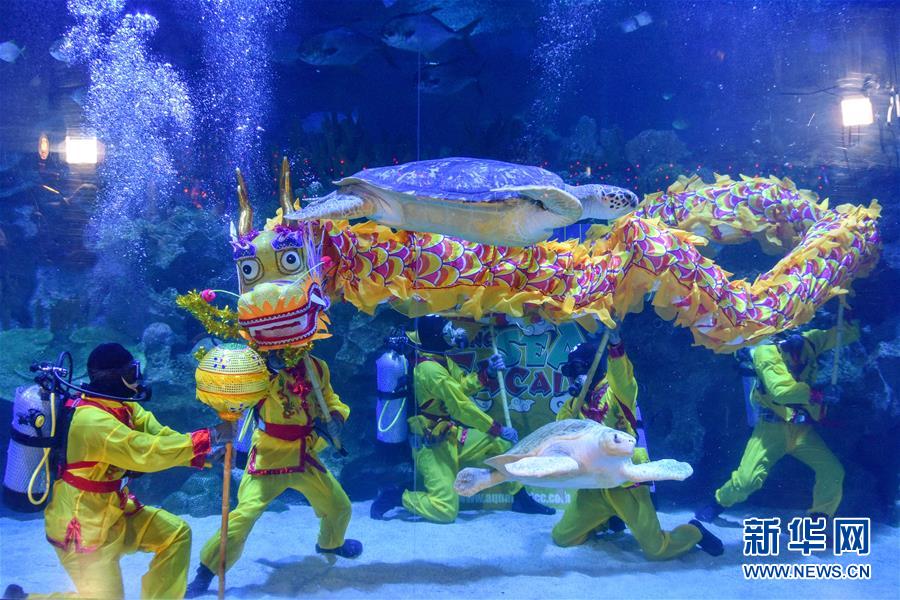 1月17日,在马来西亚吉隆坡,潜水员表演水中舞龙,迎接农历新年到来。 新华社发(张纹综摄)