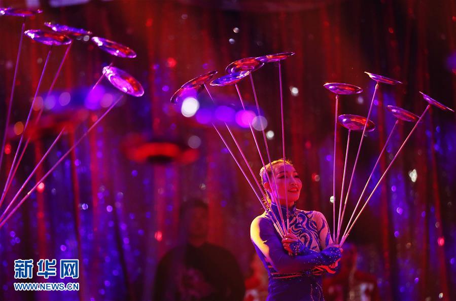 1月16日,在摩纳哥举行的第44届蒙特卡洛国际马戏节上,来自中国山东省杂技团的演员表演《转碟》。 第44届蒙特卡洛国际马戏节16日在摩纳哥蒙特卡洛开幕,曾三次获得“金小丑”奖的中国山东省杂技团备受瞩目,这次带来三个节目参与角逐“金小丑”奖。 新华社记者高静摄