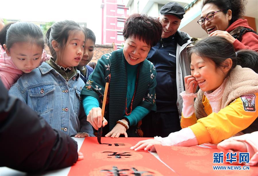 1月18日,人们在南宁市少年儿童图书馆写春联。新华社记者 陆波岸 摄