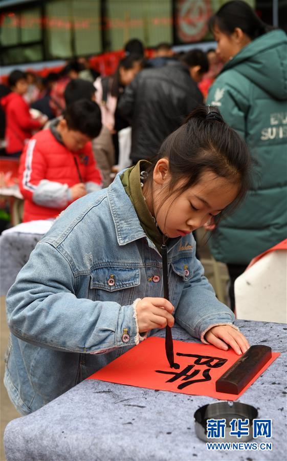 1月18日,小朋友在南宁市少年儿童图书馆写春联。新华社记者 陆波岸 摄