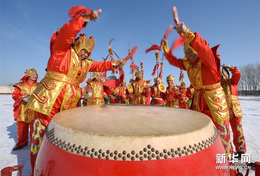 2020年1月20日,河北省隆尧县千户营乡千户营村举办非遗“招子鼓”民俗社火展演活动,迎接新春。 新华社记者 牟宇 摄
