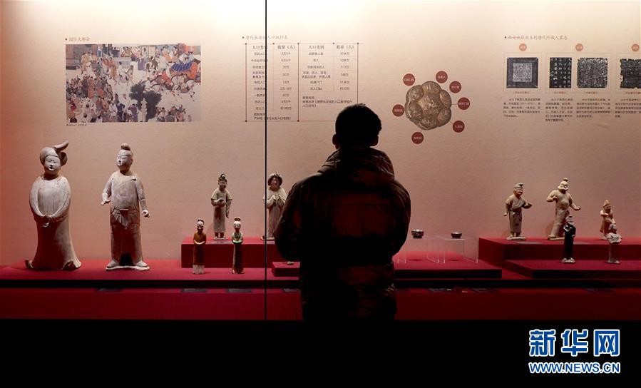 参观者在西安博物院观看“乐居长安—唐都长安人的生活”展(1月20日摄)。